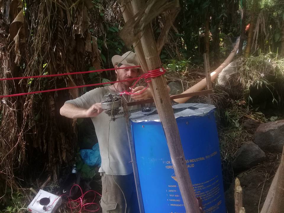 Daniel Connell, ingénieur en Low- Tech travaillant sur une turbine hydraulique pour produire de l’électricité dans la ferme d’aquaculture.
